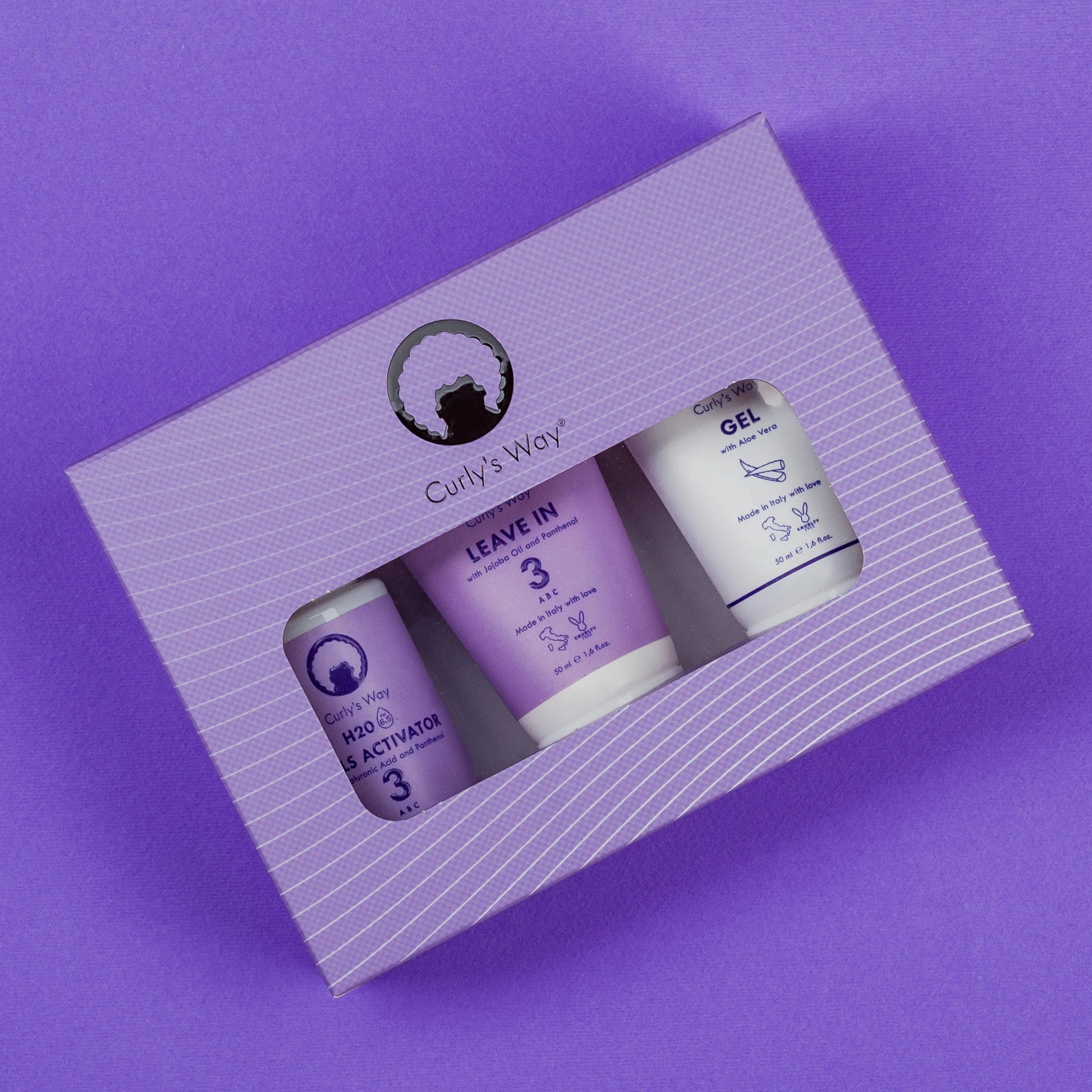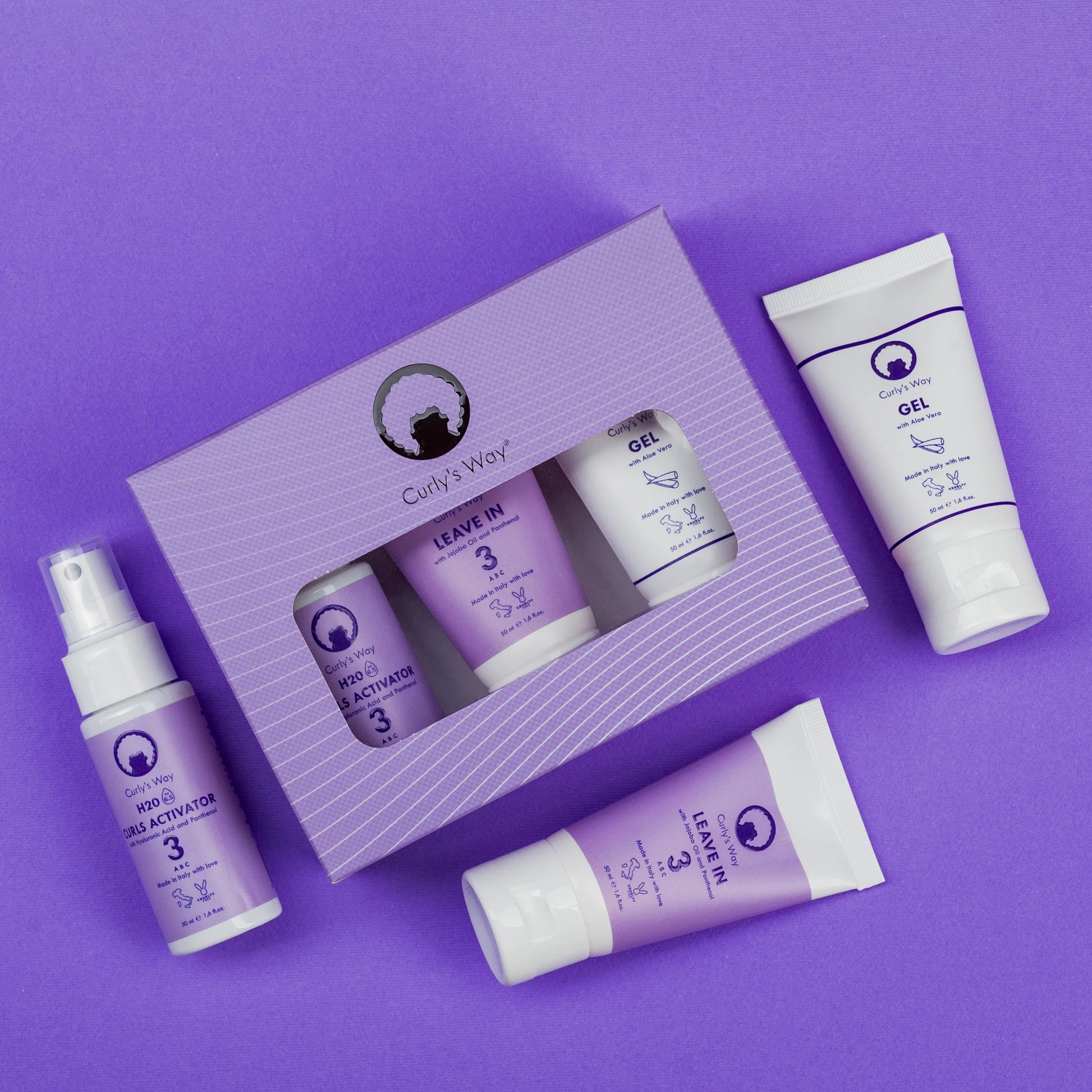 Curly's Way è l'unico marchio che offre dei KIT prodotti su misura per capelli mossi, ricci e afro/coily.